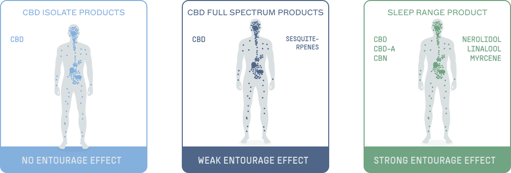 Das Ergebnis ist ein Extrakt, welche reich an natürlichen Cannabinoiden (CBD, CBD-A, CBN…) und Terpenen (Nerolidol, Linalool, Myrcene) ist. Dieses breite Molekülprofil ist wichtig für den Entourage-Effekt und verstärkt die Wirkung auf Endocannabinoidsystem (ECS) und die schlaffördernden Eigenschaften.