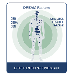 In addition to these phytocannabinoids, certain terpenes. such as Nerolidol provide a calming, relaxing, and sedative effect. Dream Restore combines a synergy of active ingredients that promote both sleep initiation and maintenance, while reducing muscle tension and anxiety.